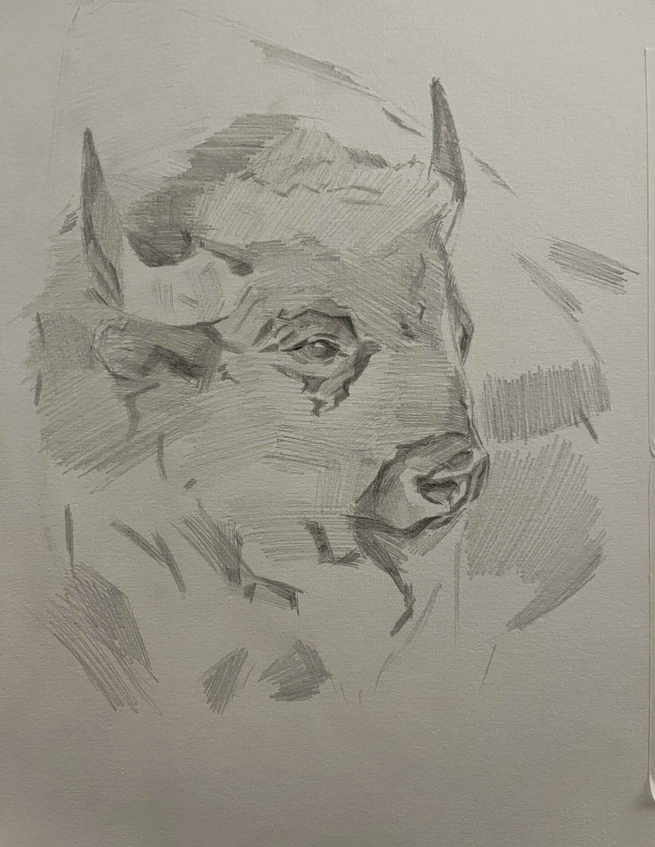Charcoal from life figure block in, 36” long 24 ‘ wide